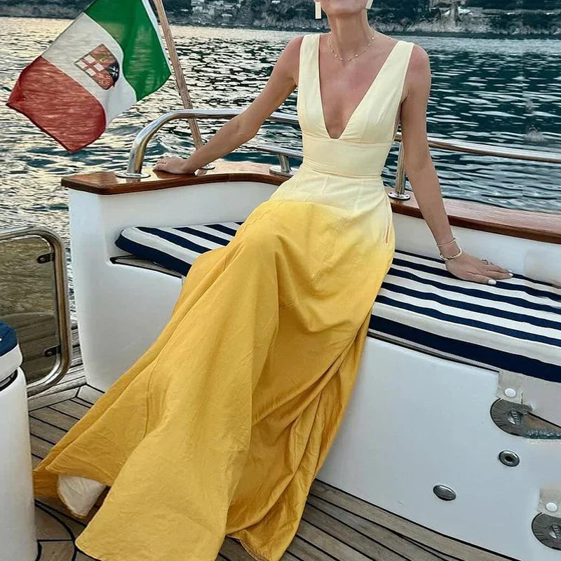 Este vestido es extremadamente versátil, convirtiéndose en una pieza esencial para tu guardarropa. Combínalo con sandalias y un sombrero para un look casual y veraniego, o con tacones y accesorios dorados para una ocasión más formal. El Adelina™ Vestido Amarillo Desvanecido es la elección perfecta para cualquier evento, asegurándote siempre destacar con brillo y elegancia.
