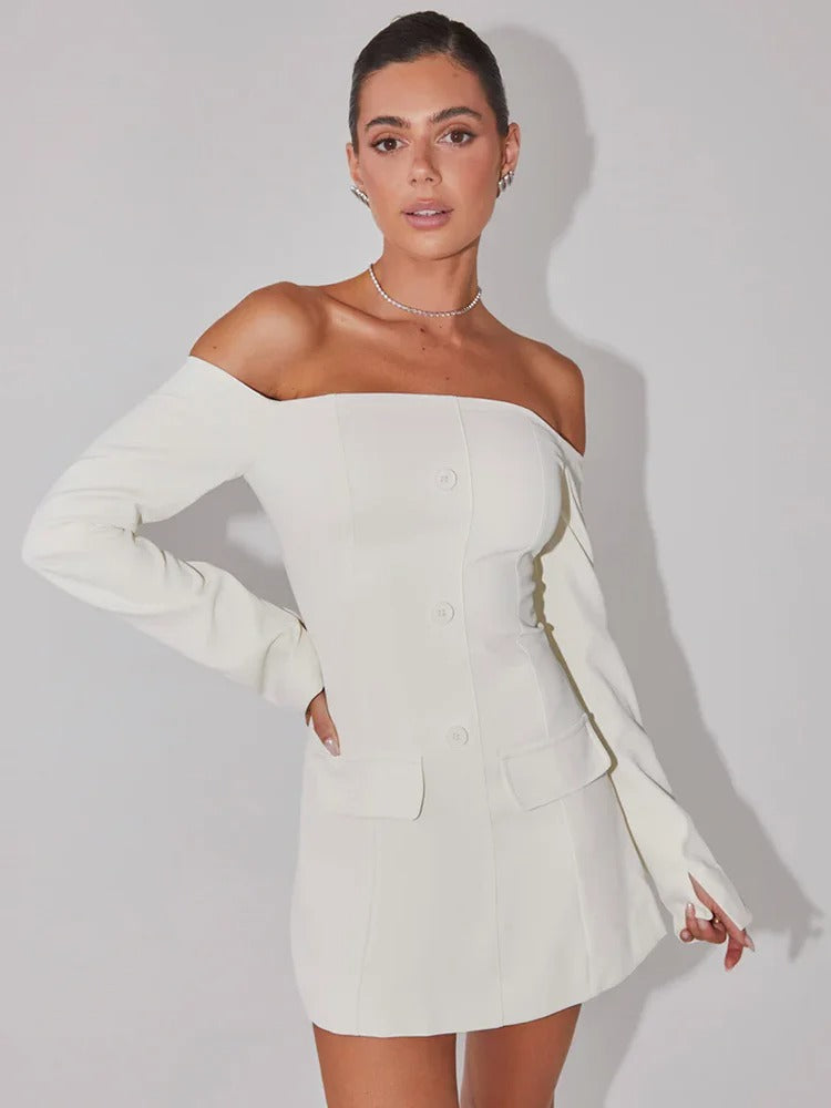Este vestido es extremadamente versátil, convirtiéndose en una pieza esencial para tu guardarropa. Combínalo con tacones elegantes y joyería minimalista para un look profesional y chic, o con accesorios llamativos y un peinado elegante para una ocasión más festiva. El Alba™ Vestido Blazer Sin Hombros es la elección perfecta para cualquier evento, asegurándote siempre destacar con estilo y gracia.
