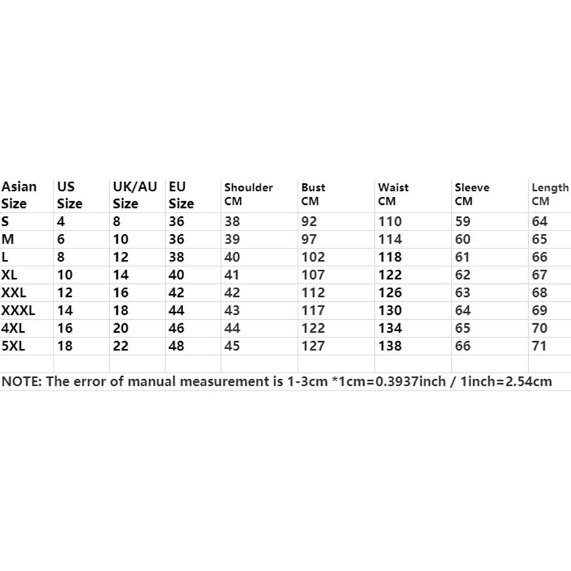 Nota: El error de medición con en 2-4cm es normal. Este es el tamaño de Asia, por lo general, es más pequeño que el tamaño de Europa / EE.UU. Compruebe la medición detallada de arriba para elegir el tamaño correcto antes de ordenar. Debido a las diferentes pantallas y efectos de iluminación, el color real del artículo puede ser ligeramente diferente del color que se muestra en la imagen.