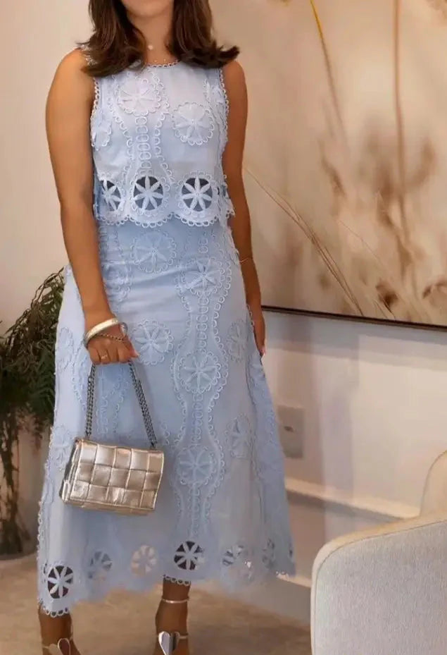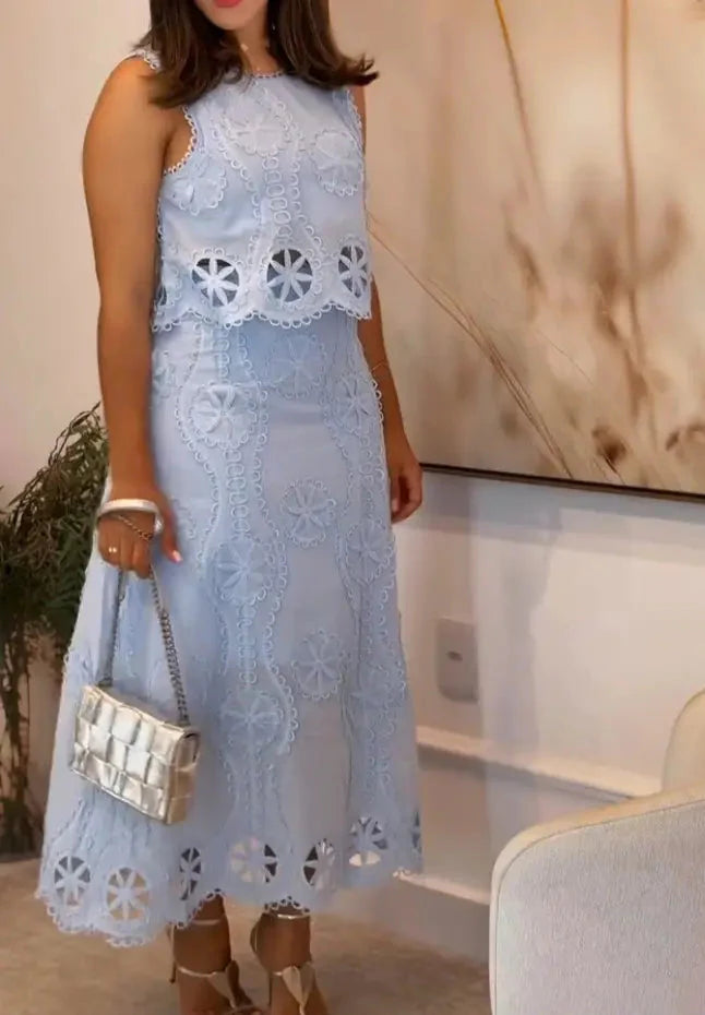 VILA™ | Conjunto 2 piezas Top + Falda de punto